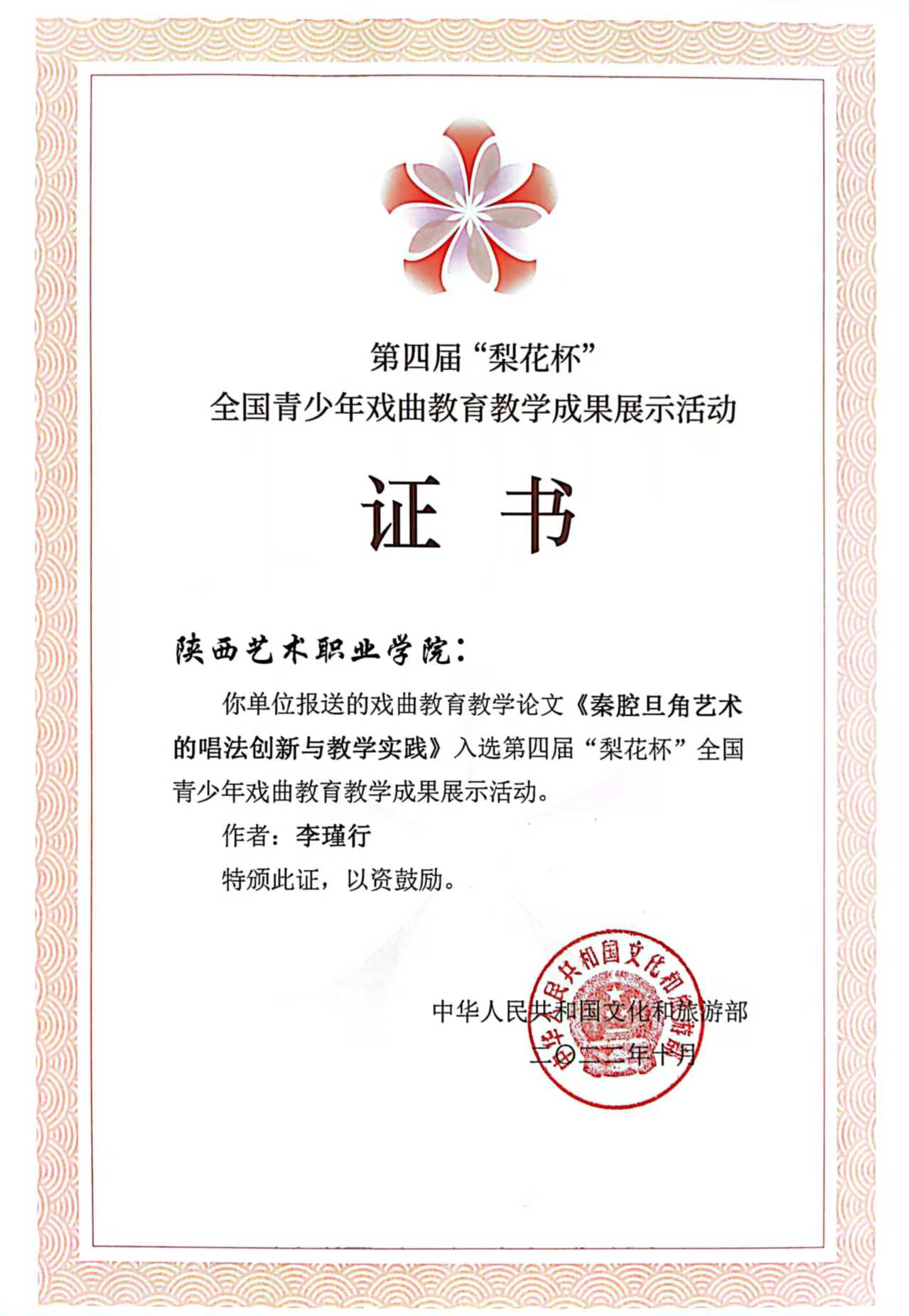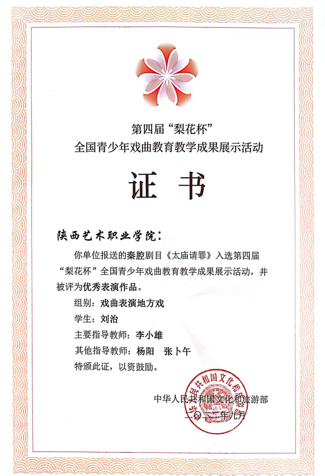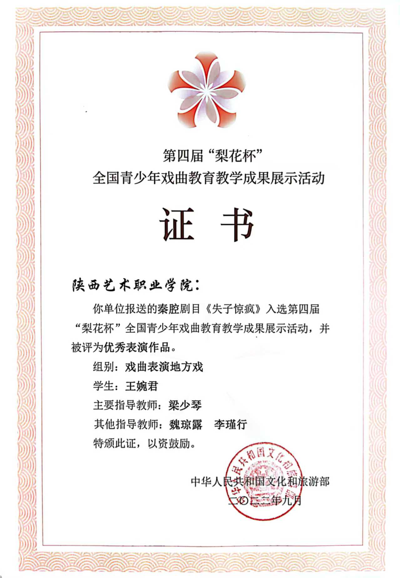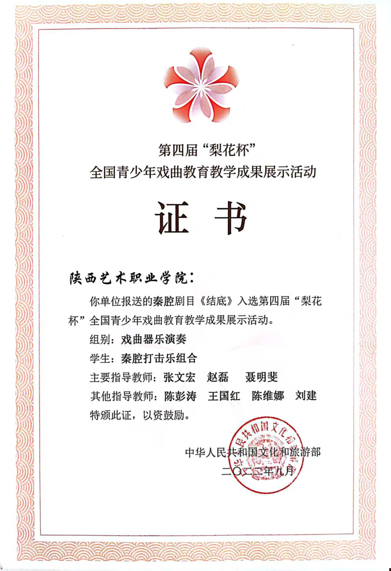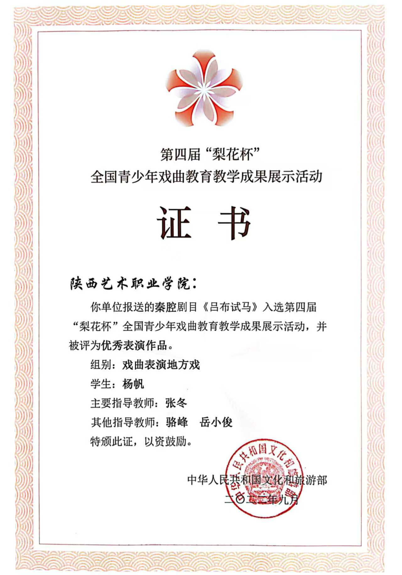 第四届“梨花杯”全国青少年戏曲教育教学成果展演获奖情况