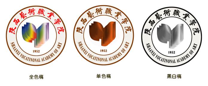2、外圆主要标识校名中英文。上方中文“陕西艺术职业学院”字样,由著名书法家雷珍民先生题写。下方“SHAANXI VOCATINONAL ACADEMY OF ART”英文字样。