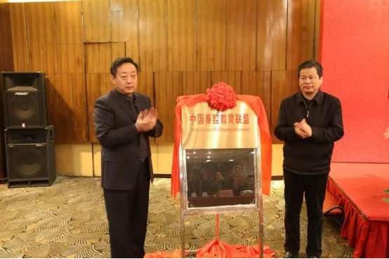 陕西省高教工委委员、组织部部长王军周(右)与陕西艺术职业学院党委书记王延奇为中国秦腔教育联盟揭牌
